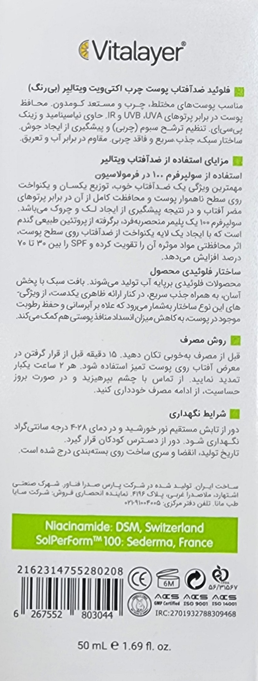 ضد آفتاب پوست چرب ویتالیر، دارای بافتی زود جذب و فاقد چربی