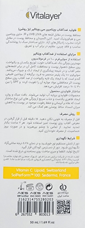 ضد آفتاب ویتالیر ویتامین سی، طراحی شده بر پایه آب