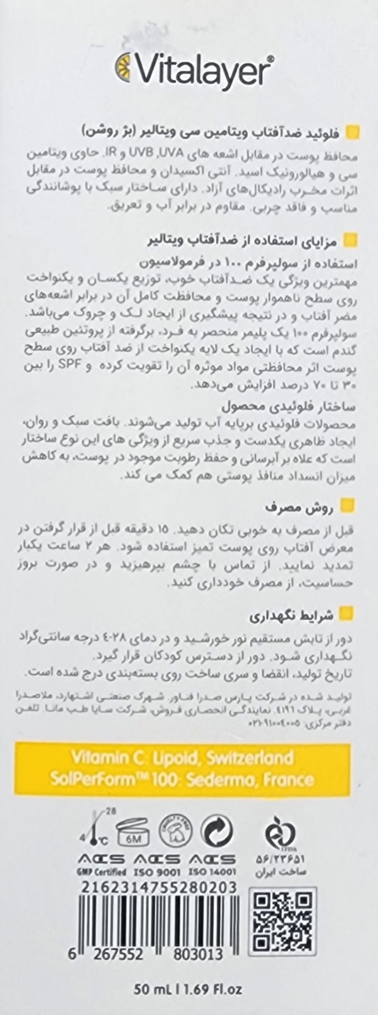 فلوئید ضد آفتاب ویتامین سی SPF50ویتالیر(لایت بژ) ۱۴۰۵/۱۱