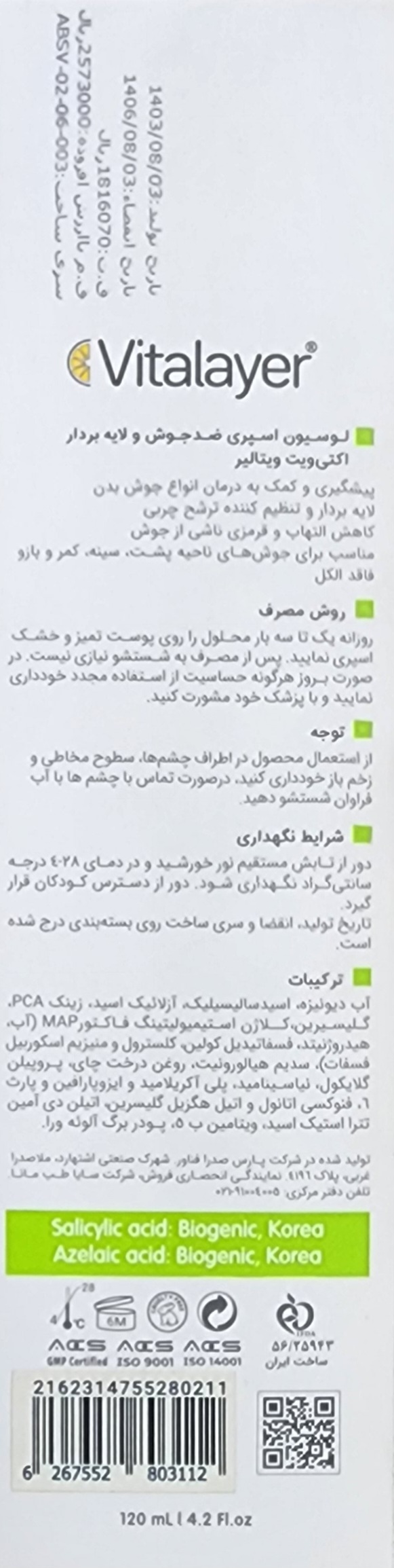 لوسیون ضد جوش و لایه بردار ویتالیر، تولید شده بدون استفاده از الکل
