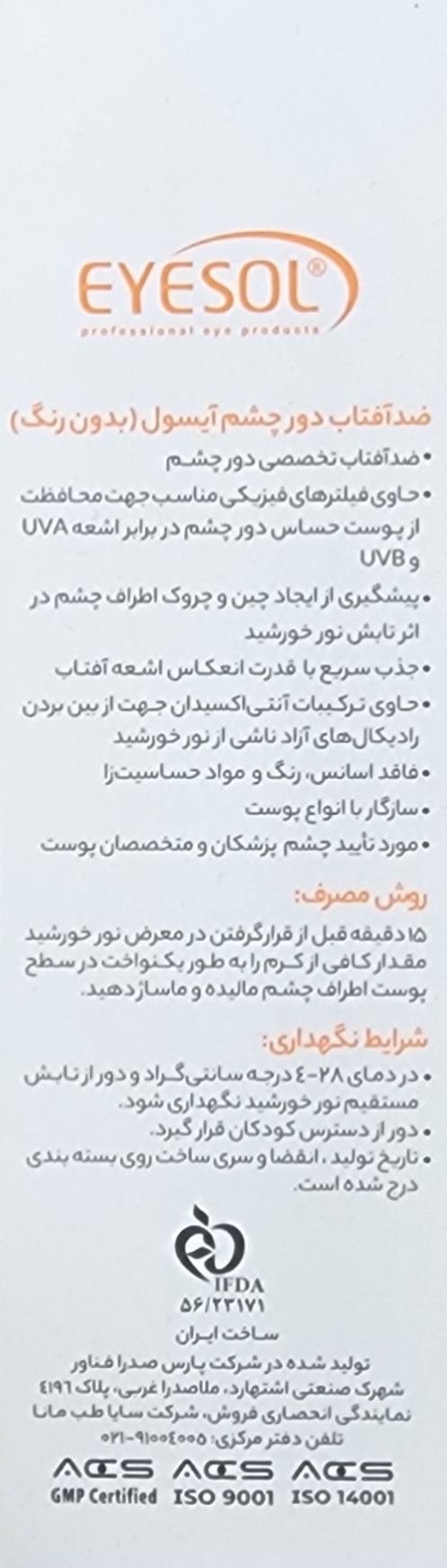 ضد آفتاب دور چشم آیسول دارای خاصیت آنتی اکسیدان