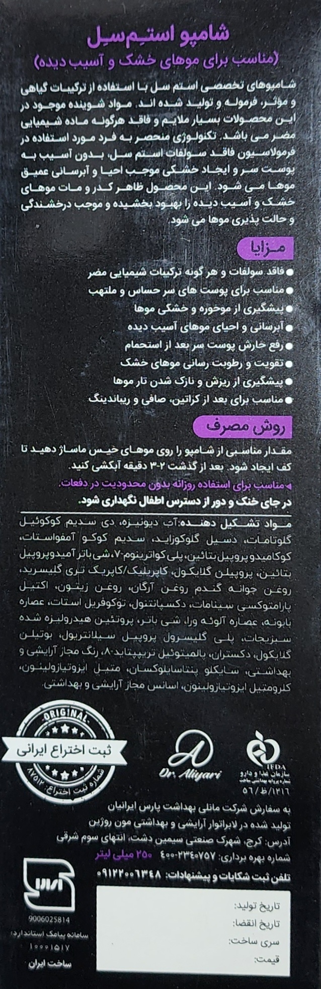 شامپو استم سل مخصوص موهای خشک و آسیب دیده ۱۴۰۶/۱۱