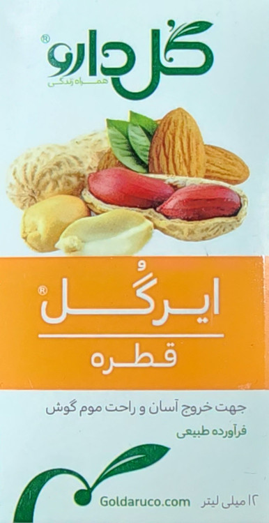 قطره گوش ایرگل، حاوی روغن های گیاهی بادام شیرین، بادام زمینی و کافور