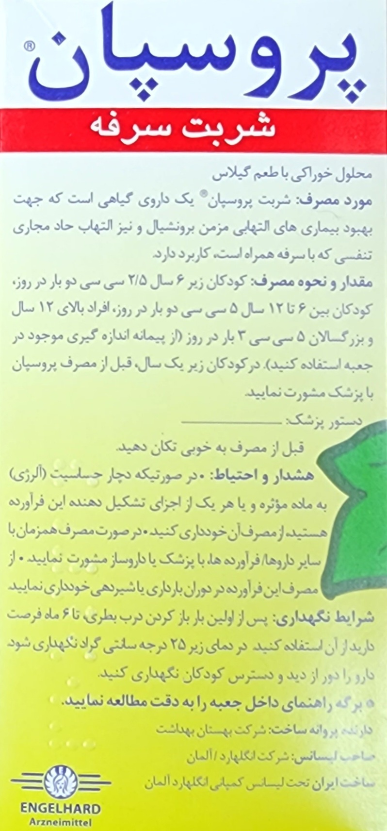 پروسپان شربت ضد سرفه گیلاس ۲۰۲۷/۱۲