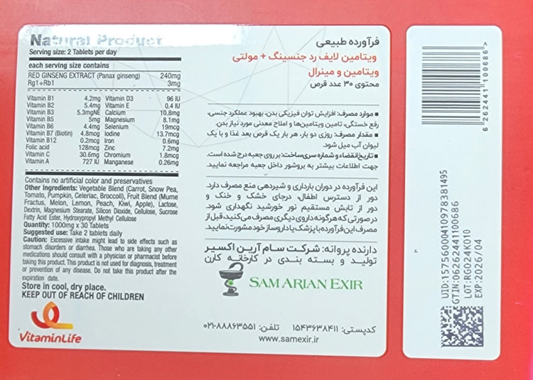 قرص رد جینسنیگ مکمل مولتی ویتامین عمومی به همراه جینسینگ
