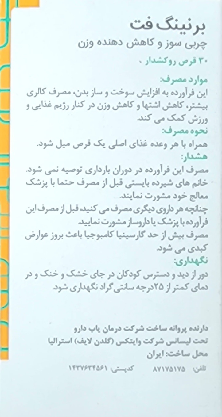 برنینگ فت قرص ۳۰عددی۲۰۲۷/۱۲