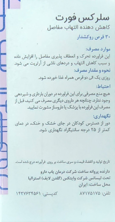 هر قوطی قرص سلرکس فورت مناسب استفاده به مدت 15 تا 30 روز می باشد.