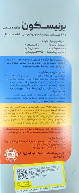 برنیسکون، حاوی سدیم آلژینات، سدیم بی کربنات و کربنات کلسیم