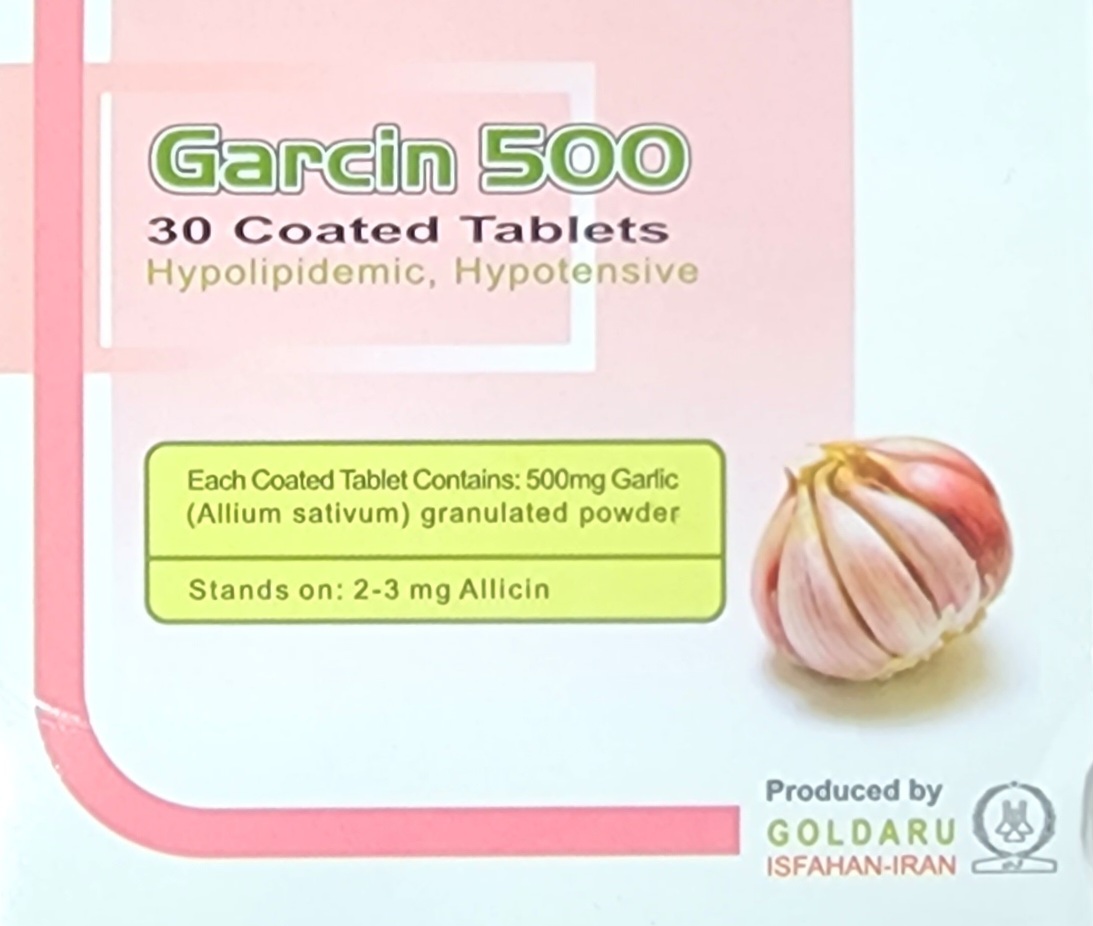 قرص گارسین، فراورده گیاهی، دارای 500 میلی گرم پودر سیر در هر قرص