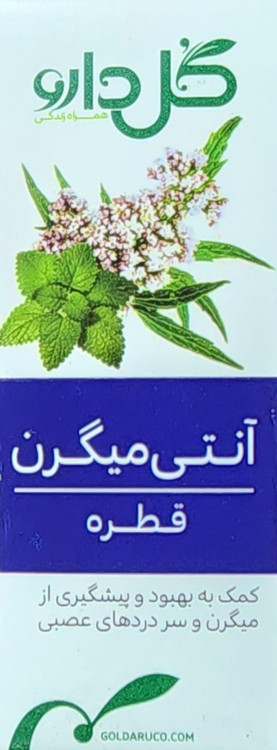 قطره آنتی میگرن، حاوی ترکیبی از ریشه و ریزوم سنبل الطیب، رازیانه، پوست بید و برگ بادرنجبویه