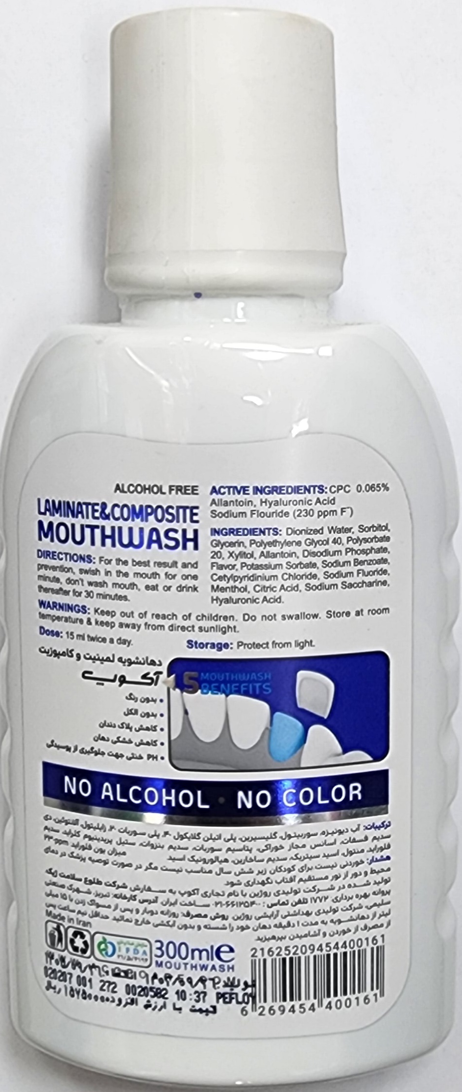 دارای pH خنثی جهت جلوگیری از پوسیدگی میزان فلوراید: 230ppm کاهش خشکی دهان کاهش پلاک دندان بدون الکل و رنگ