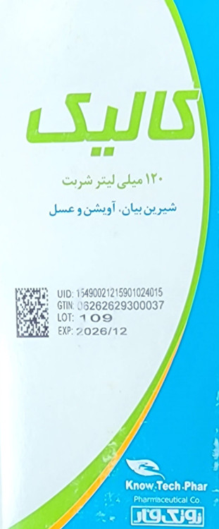 شربت کالیک، حاوه عصاره گیاه شیرین بیان و آویشن باغی به همراه عسل و انیسون