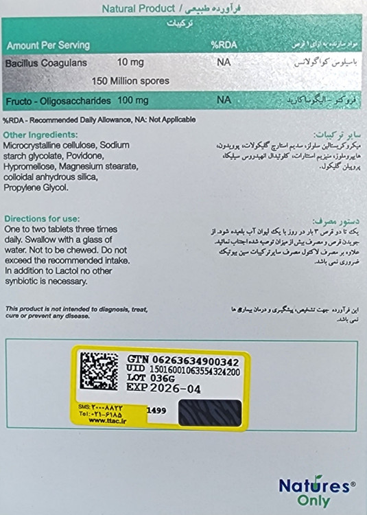 قرص لاکتول، فاقد ۹ آلرژن اصلی: گلوتن، ذرت، سویا، مخمر، گندم، شکر، نشاسته، رنگ و نگهدارنده مصنوعی