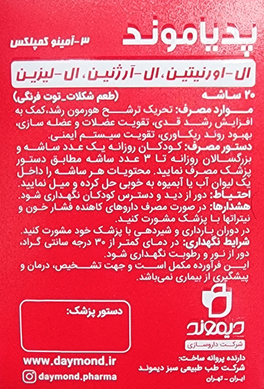 پدیاموند کمک کننده به افزایش خونرسانی به عضلات بعلت خاصیت گشاد کنندگی عروق ال آرژنین هیدروکلرید و اورنیتین