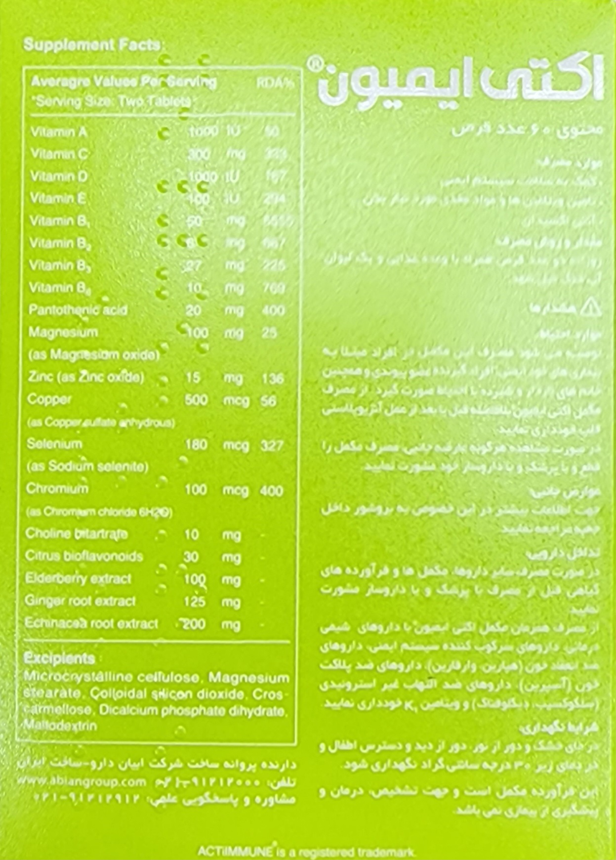 اکتی ایمیون، حاوی عصاره الدربری (آقطی سیاه)، زنجبیل و اکیناسه