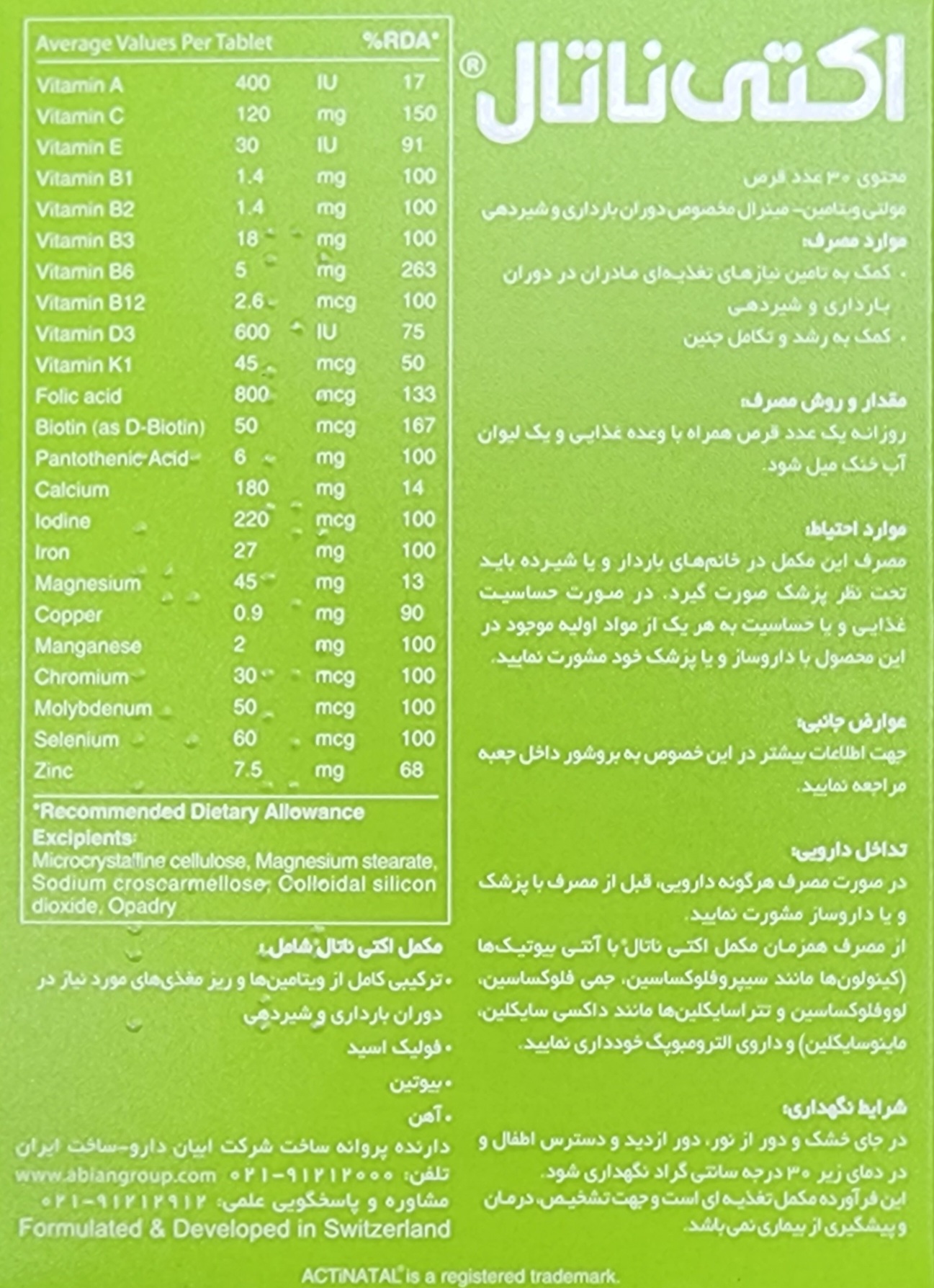 اکتی ناتال، مولتیویتامین-مینرال مخصوص دوران بارداری و شیردهی